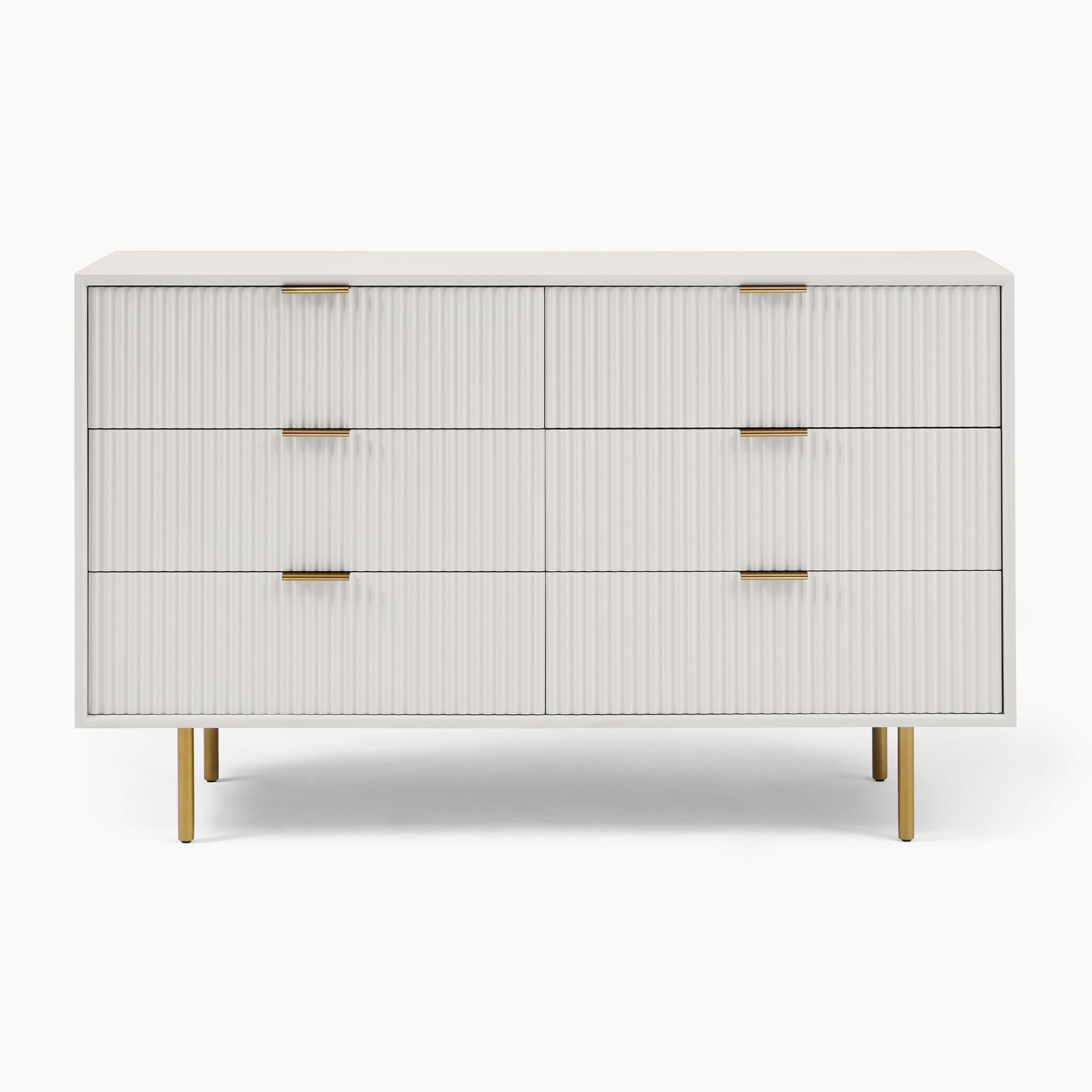 - Six drawers open on metal glides.