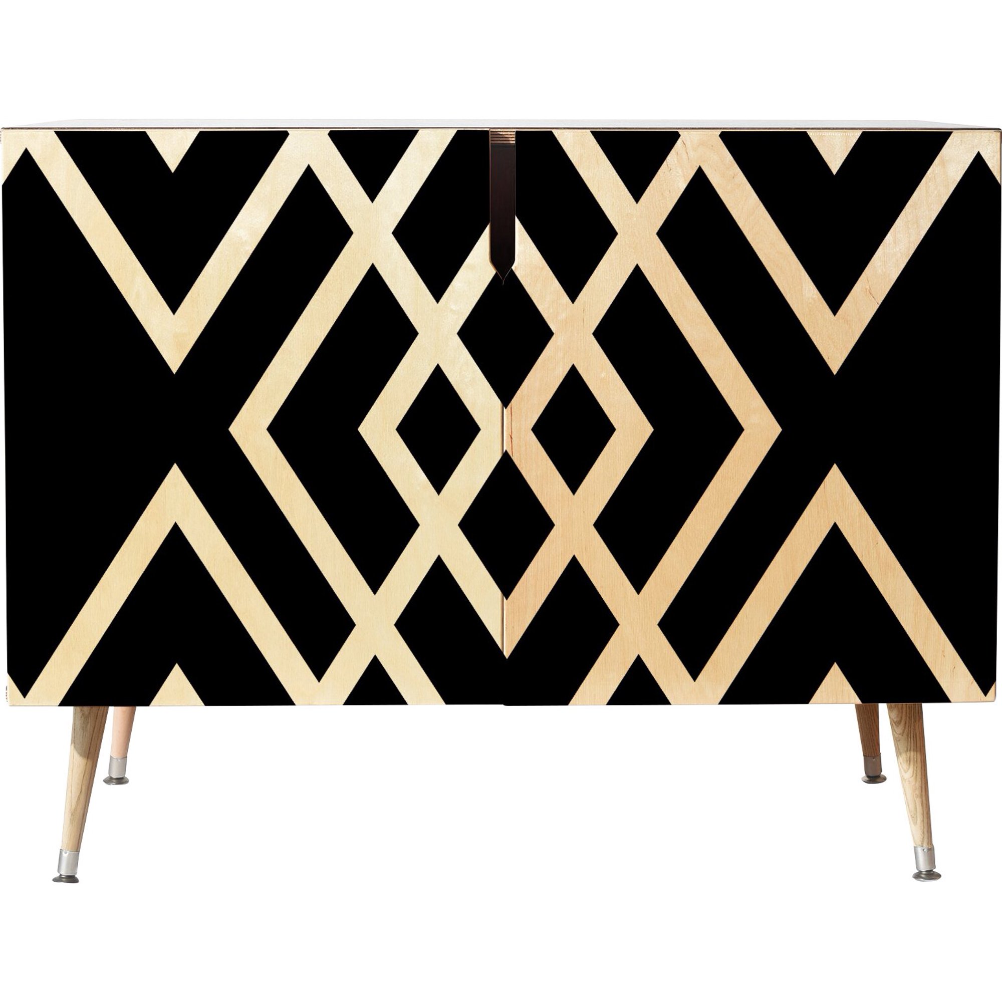 More than just a place to tuck away your things, accent cabinets help you craft a cohesive aesthetic in any space. This design, for example, brings a hint of mid-century appeal to your ensemble, sporting tapered legs and an eye-catching front with a contrasting geometric pattern. Made in the USA, this design is crafted from solid wood and features an adjustable interior shelf that’s perfect for tucking away books, spare linens, and more.