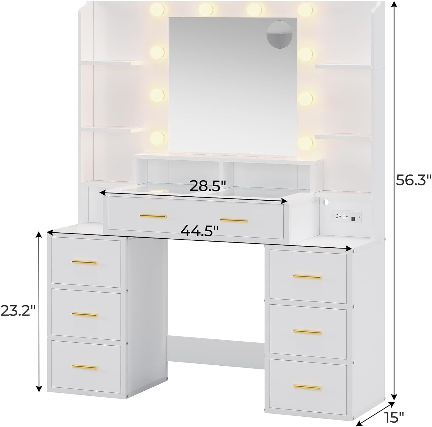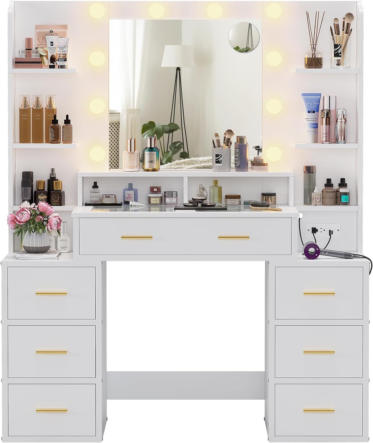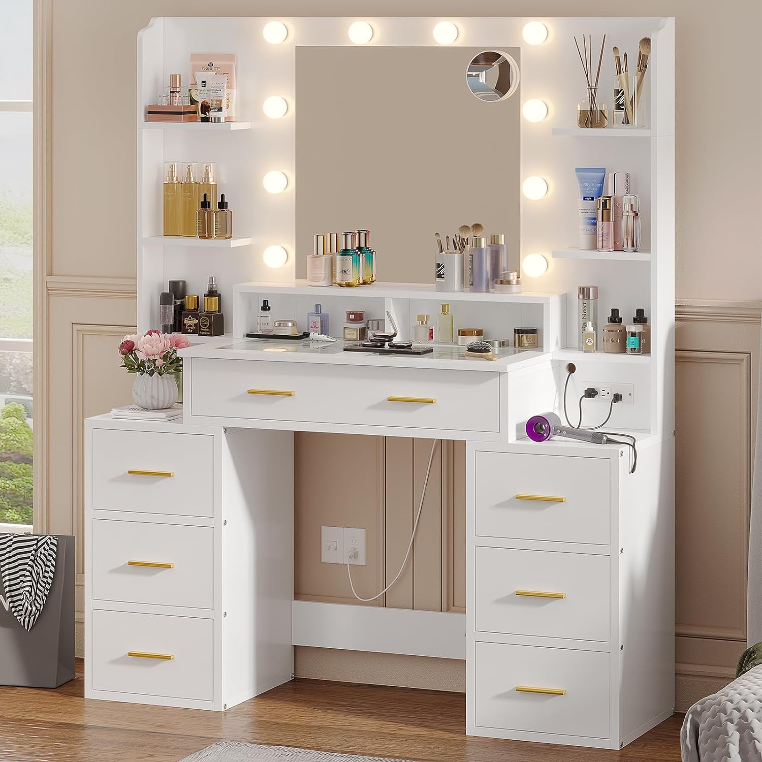 The 8 drawers and 7 storage shelves can easily hold all your makeup, styling tools and other beauty essentials, keeping everything looking neat and organized. Additionally, the height design of the 3-drawer chest can also be used as a nightstand, saving both money and space.