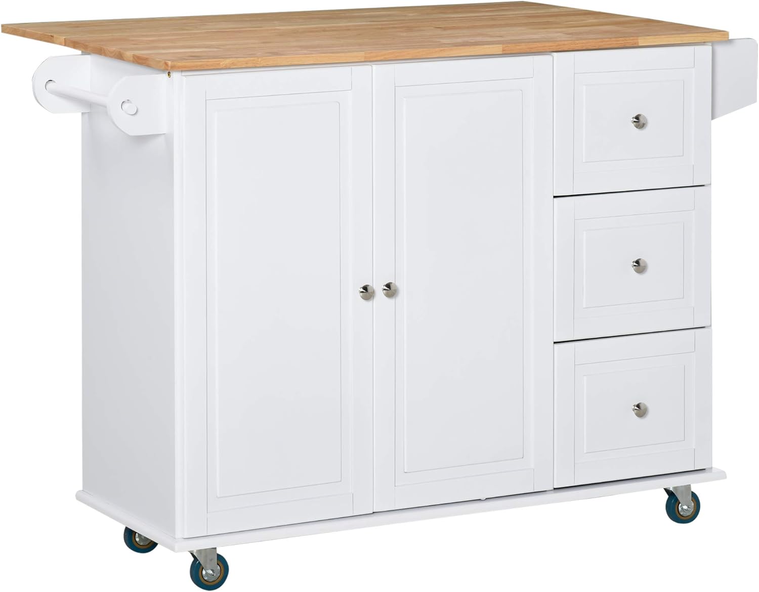 - Towel and Spice Rack: This kitchen cart comes with a towel and spice rack on each side of the kitchen island. No need to go back and forth to your cabinets when everything you need is on your new kitchen island.